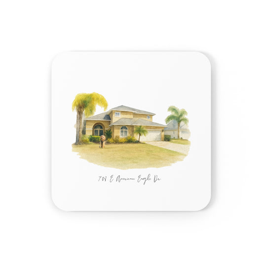 Personalized Home Portrait Cork Back Coaster, Custom Housewarming Gift, Kitchen Decor, Unique Coaster Set, Housewarming Present